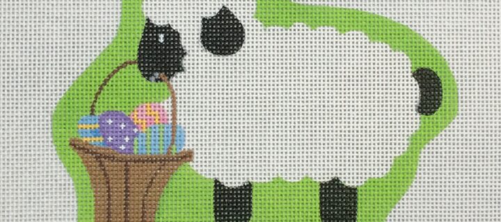 Lamb w/Basket Stitch Guide w/embellishments by Laurie Walden